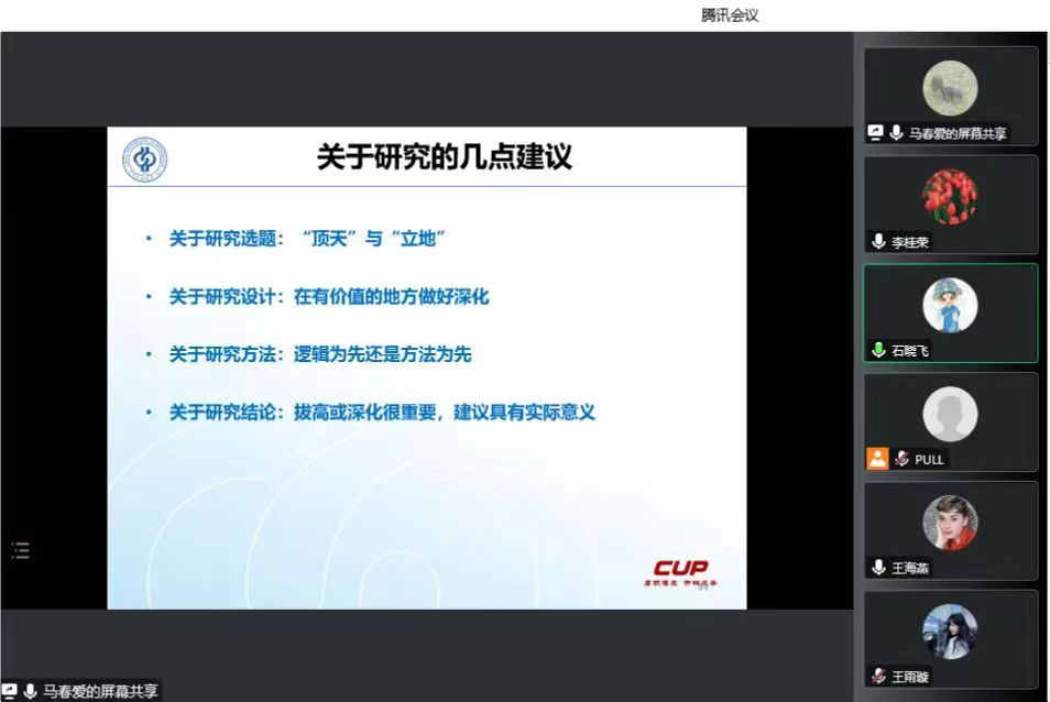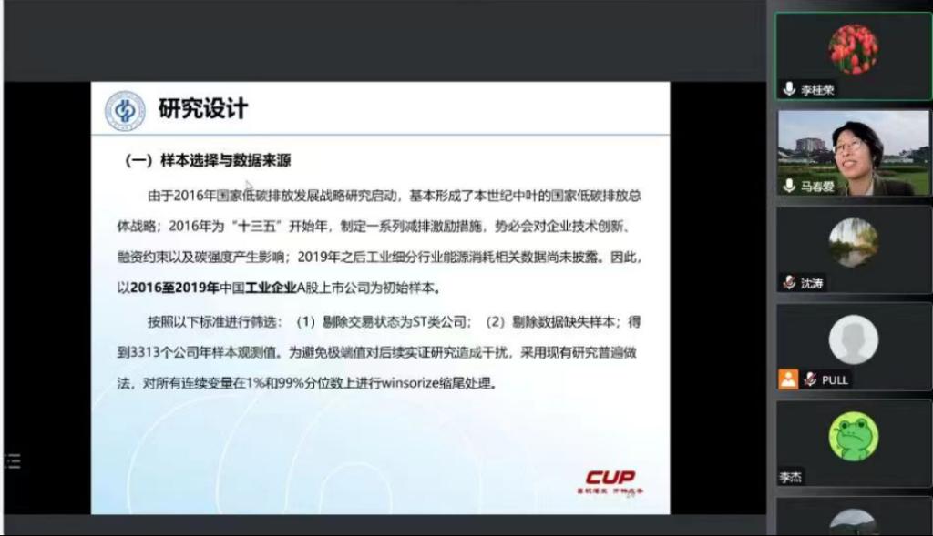 11月10日晚,suncitygroup太阳集团邀请中国石油大学经济管理公司副经理、博士生导师马春爱教授在线作题为“政府创新补助对工业企业碳强度影响路径研究”的学术报告。报告由suncitygroup太阳集团经理李桂荣主持,公司教师及研究生100余人参加。