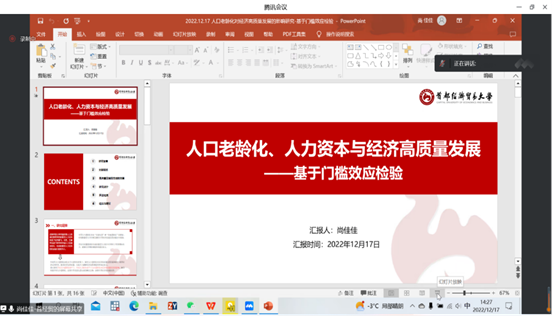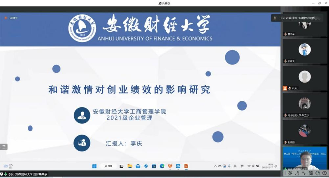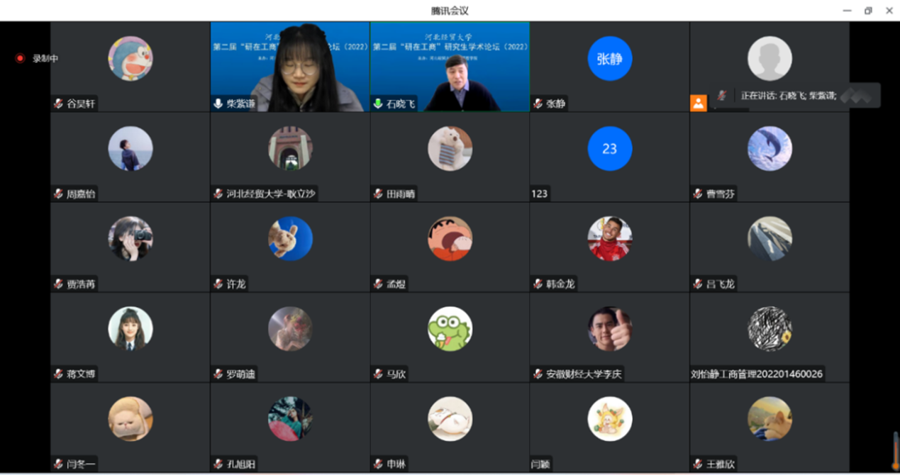 12月17日下午,由suncitygroup太阳集团主办的第二届太阳集团官方网站“研在工商”研究生学术论坛以腾讯会议形式成功举办,suncitygroup太阳集团经理李桂荣教授出席并致辞。论坛由suncitygroup太阳集团副经理石晓飞主持,石晓飞博士、张静博士、耿立沙博士和许龙博士出席担任评委,本次论坛包括教师及研究生共100余人参加。