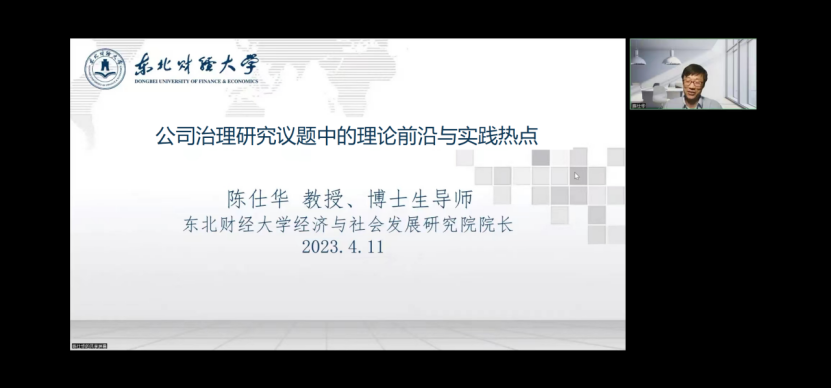 4月11日晚,suncitygroup太阳集团邀请东北财经大学经济与社会发展研究院经理、博士生导师陈仕华教授在线作题为“公司治理研究议题中的理论前沿与实践热点”的学术报告。报告由suncitygroup太阳集团副经理石晓飞主持,公司教师及研究生230余人参加。
