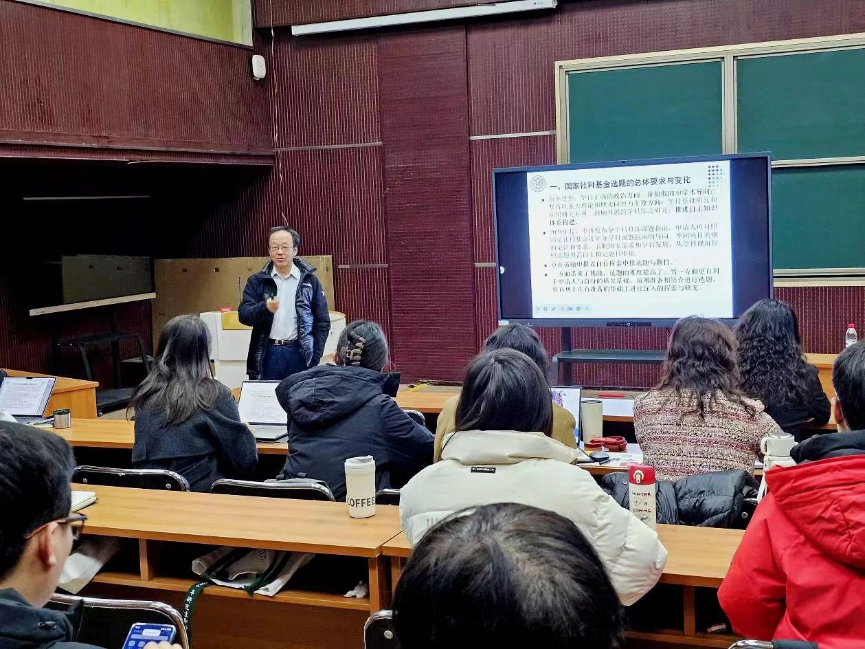 刘志远教授从选题的总体要求与变化、选题的重要性、如何进行选题、申请书的撰写四方面进行介绍,着重强调了国家社科基金项目申请中选题的重要性和项目申请书撰写的严谨性。他指出,选题应具体、有针对性,紧密结合实际问题与理论前沿,基于深入的文献回顾和敏锐的现实洞察,确保具有创新性、可行性和学术价值;选题的提出需结合理论分析与实践数据或案例支持,展现研究的问题导向和应用导向;项目申请书撰写时,需清晰阐述研究目的、意义、方法及预期成果,同时关注项目定位和评审标准变化。最后,刘教授结合自己的申报经验,就如何进行选题和申请书撰写的技巧及方法,对国家社科基金申请中的一些细节问题进行了详细的分析和讲解。