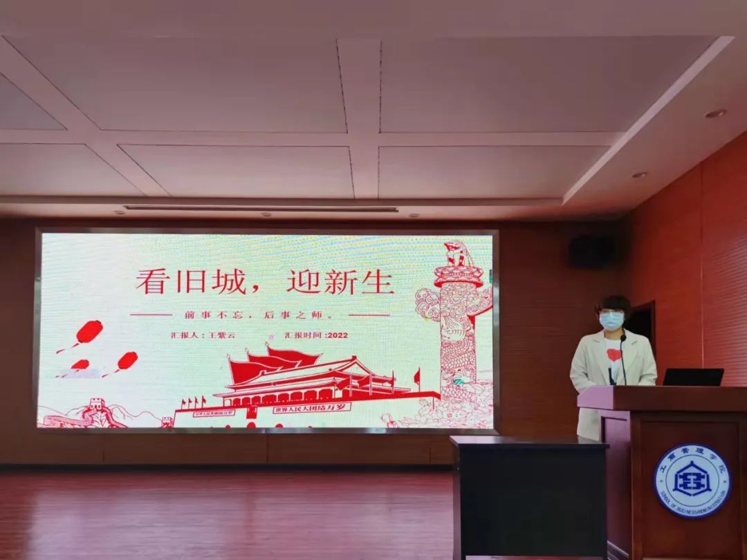 主讲人王紫云同学以“看旧城,迎新生——前事不忘,后事之师”为主题,从潘家峪惨案、潘家戴庄惨案、鲁家峪惨案、大杨官营惨案和唐山大地震五个事件回顾了唐山这座历史名城自近代以来遭受的磨难。