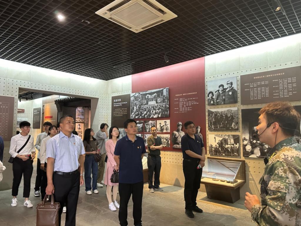 全体党员首先来到晋察冀边区革命纪念馆和毛主席居住工作过的地方进行现场教学,缅怀老一辈无产阶级革命家的丰功伟绩。步入庄重肃穆的纪念馆大厅,全体党员干部面向鲜红的党旗庄严宣誓,“我志愿加入中国共产党……为共产主义奋斗终身,随时准备为党和人民牺牲一切,永不叛党。”在铿锵的誓言中,初心接受洗礼,赓续红色精神。随后,党员们跟随讲解员参观了第一展厅“模范抗日根据地——晋察冀边区”、毛主席花山旧居……每到一处,大家都仔细观看展板、实物,认真聆听讲解员的讲解,身临其境感受晋察冀边区斗争、生活的场景,一桩桩事迹、一个个壮举、一张张图片,让全体党员深深感受到中国共产党人为国家独立、民族解放而英勇斗争、不怕牺牲的精神,思想受到启迪,灵魂受到震撼。党员们深刻感受到抗战精神中蕴含的宝贵财富,应该传承下去。革命英雄,永远闪耀光芒。我们要不断创新,讲好红色故事,弘扬革命精神,以思想火炬,照亮壮阔征程。